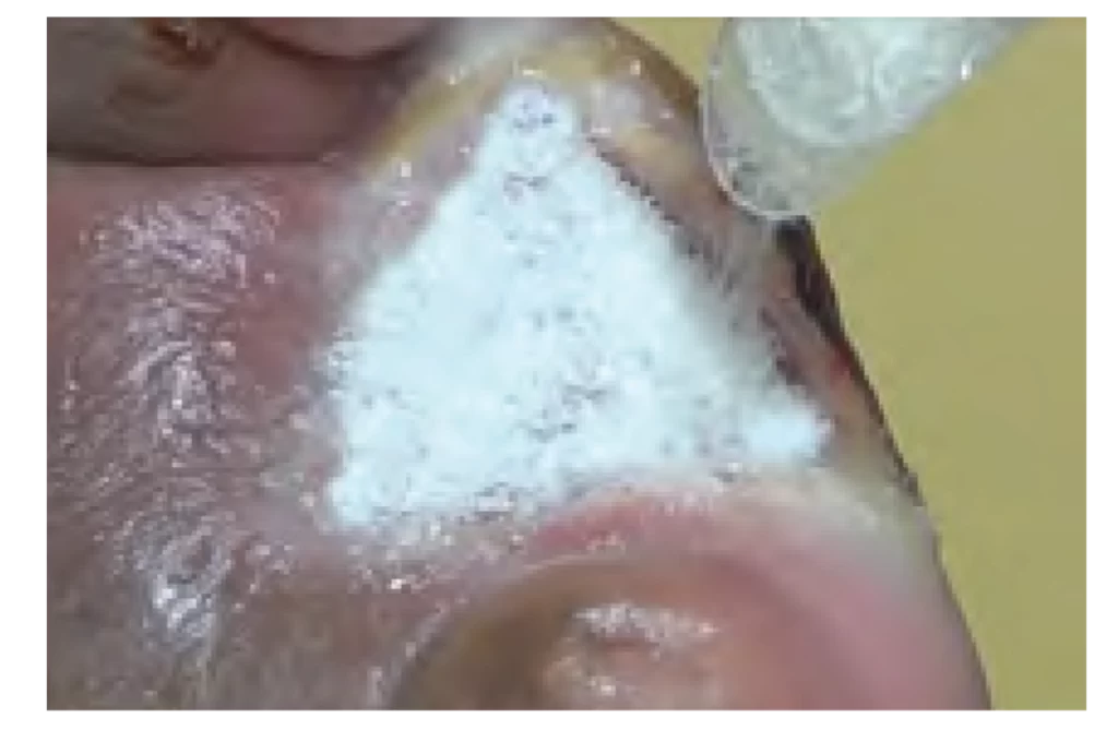Pour powder to cover edges and surface